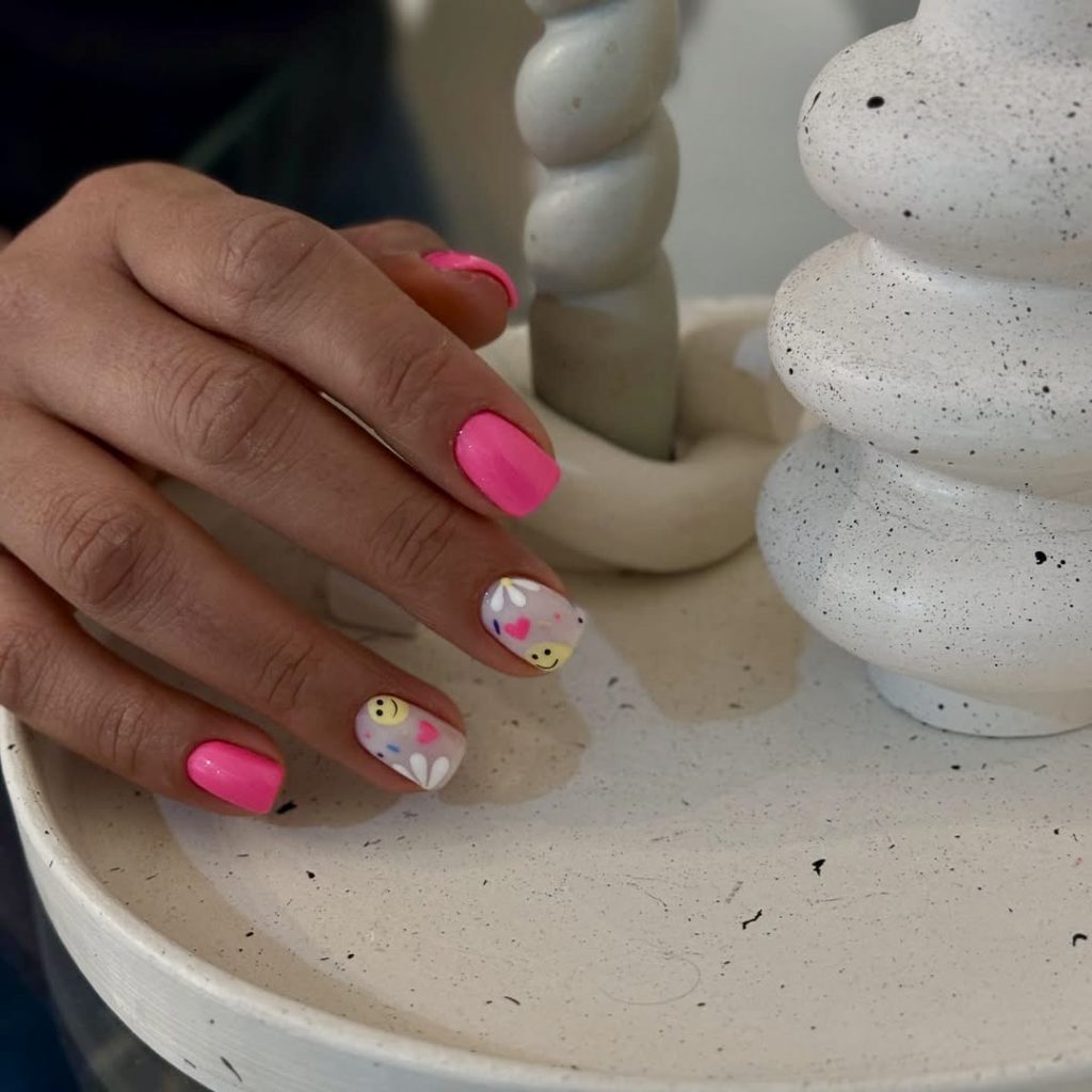 1. Bright Pink and Smiley Summer Nails