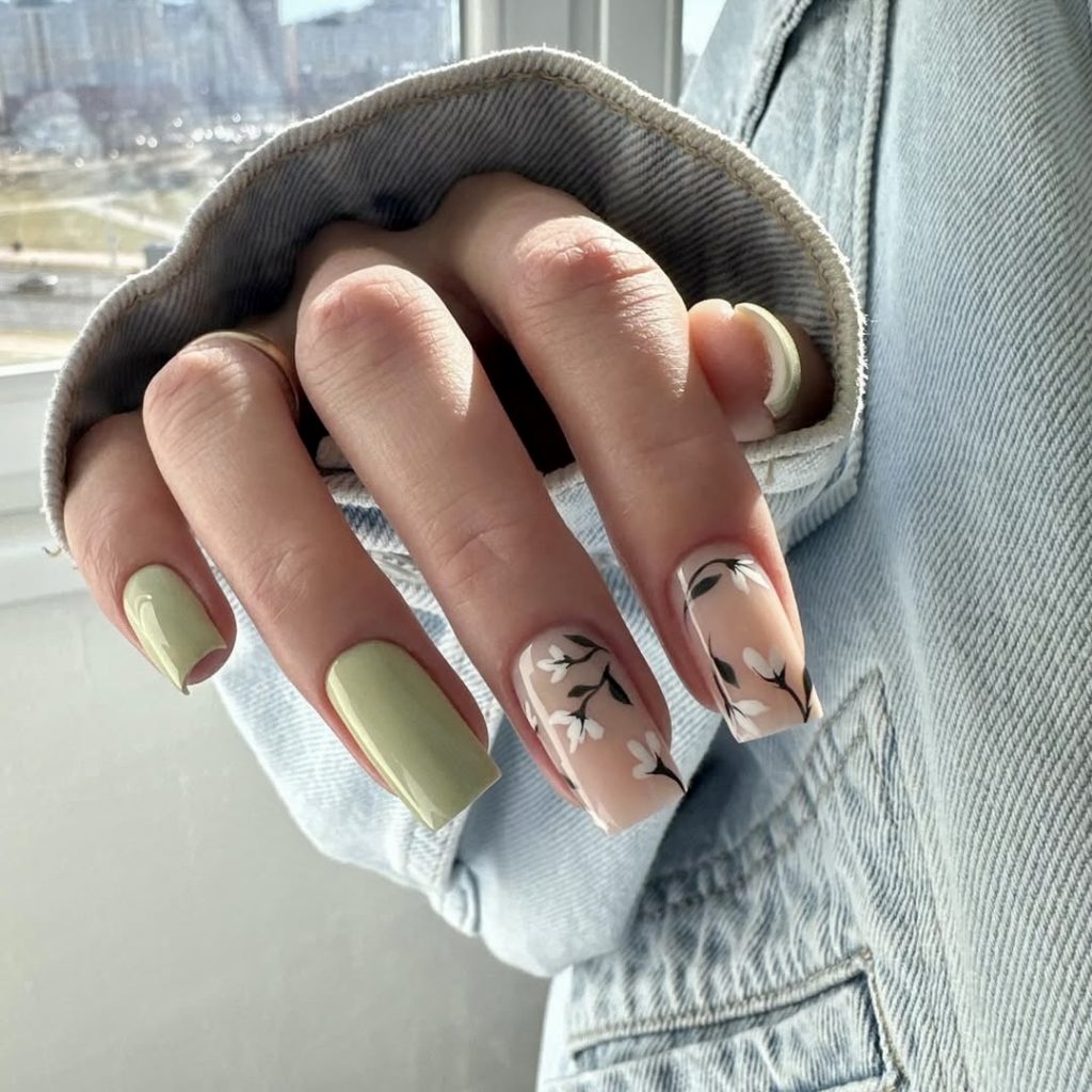 4. Fresh Green with Floral Accents