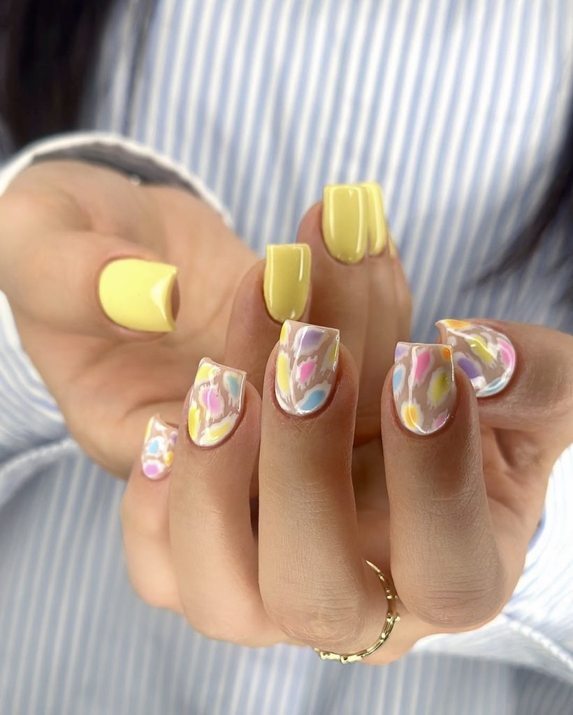 This design is a sophisticated play between playfulness and maturity. With its sunshine-solid yellow nails alongside the cute, pastel-colored animal prints, this is a wow idea for summer nails squared 2025. Whether your days on the beach or the casual outdoor brunches, it`s a perfect look and is carefree but stylish at the same time. The short length of the nails being made simple and the only use of pastels is for women who desire an energetic look without going all the way. Talk about being versatile, the color combination could match anything from a white linen dress to a denim romper.
