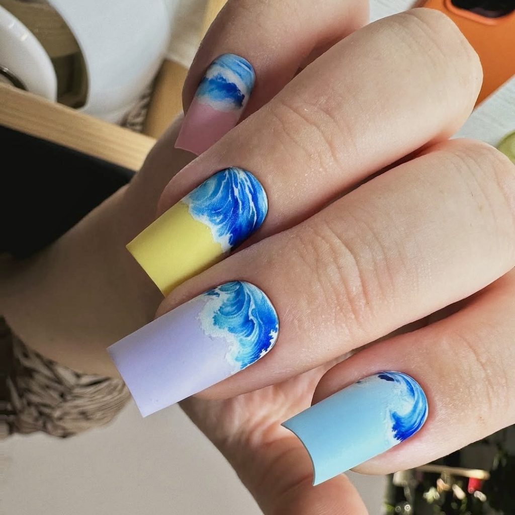 20. Ocean Wave Inspired Nail Art