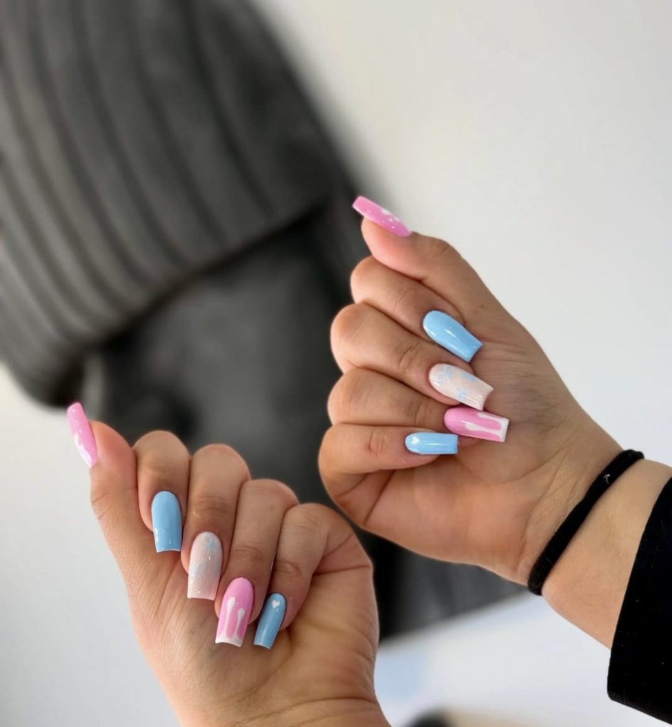 Adorable pastel design polish supplies a soft but playful and very special twist to it mixing solid blue, pink, and milky white nails including the ice-cream art effects. The sparkle effect on square nails is a perfect unison of the cute shades and a modern edge thus this design is just right for spring brunches, hanging out at the beach, or even for bridal showers. The glossy coating provides a juicy and refined atmosphere to them — it is so easy to bring together simple elegance and trendy fun in one piece. If you add a pastel handbag or a light sundress, you definitely pass the bonus.
