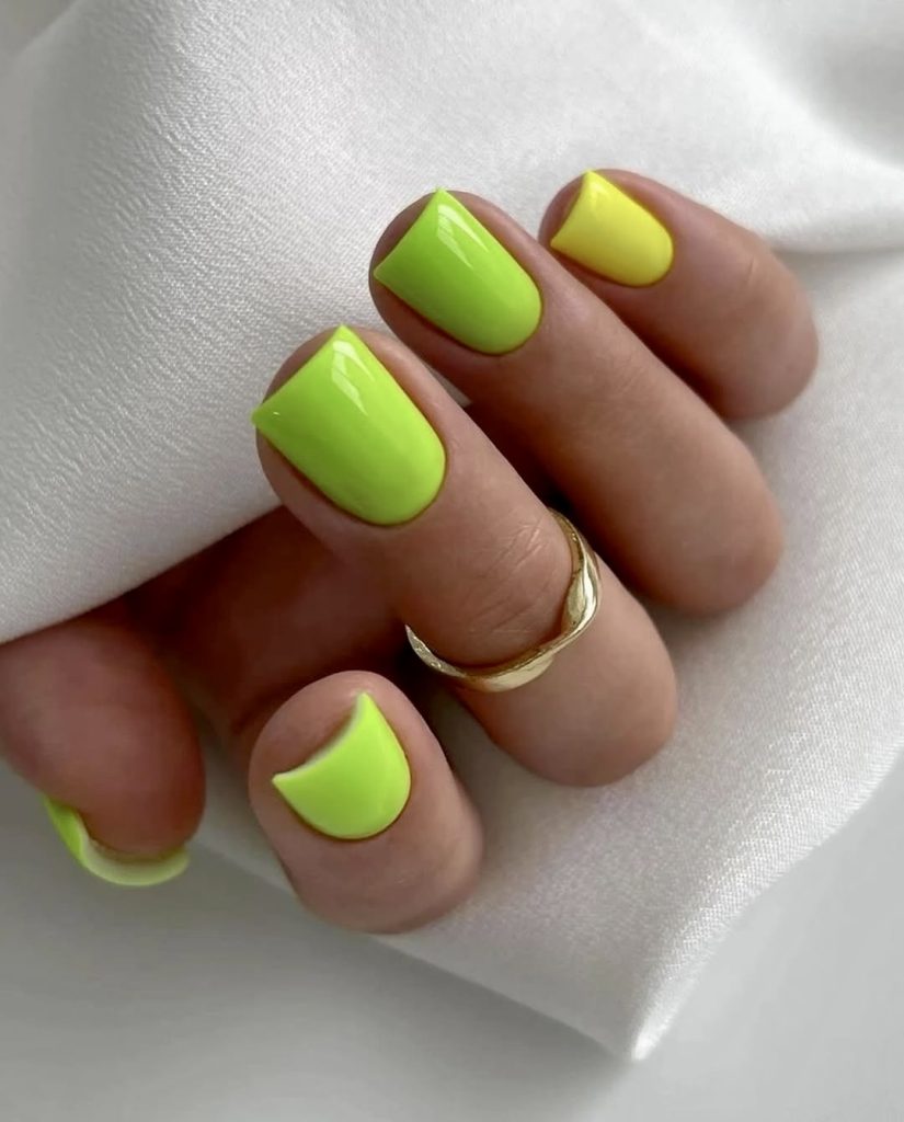 Just with one color, you can create a tremendous impression at times. These extremely bright yellow-lime nails give an impression of almost luminous light, which is idealistic for those who want to add a burst of color to their summer 2025 wardrobe. The square shape adds edges to the design, this makes it ideal for pool days, music festivals, or just lying on a sun terrace. It’s a bright and cool style that can go with white clothes and tropical prints, thereby making any outfit livelier.