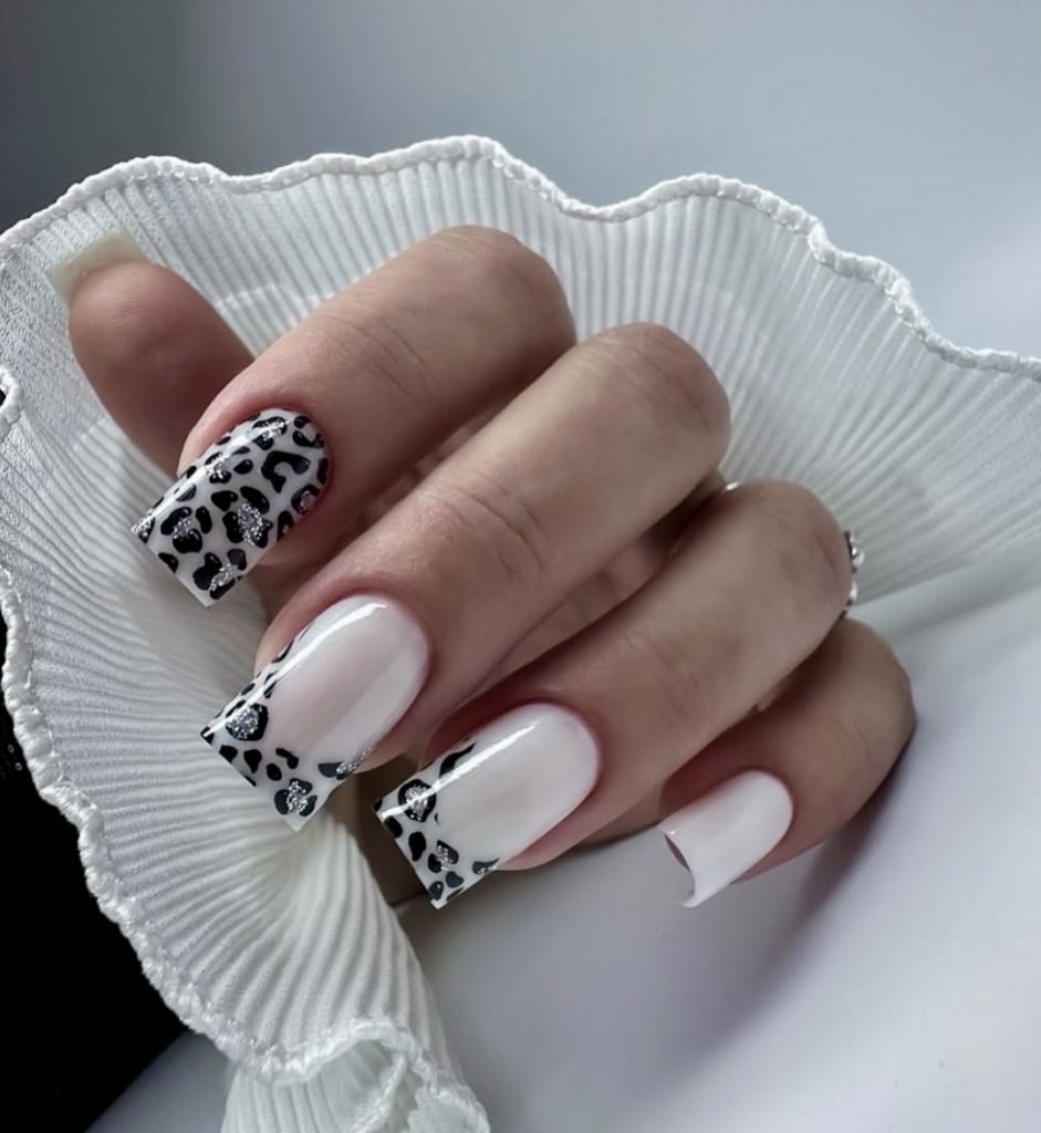 This design is a brilliant take on summer days as it features a design that consists of a dynamic orange and pink color palette combined with animal print. The french tip is very emphatic, whereas, the leopard spots are cunning in a fun way but not too obnoxious. The composition is a loud and catchy look for anyone full of self-assurance — perfect for cosmopolitan roof gatherings, escapades, or just dressing up in the hottest days of the season. The here shape square is, in its own way, a modern, chic trend and is very much relevant to the upcoming 2025 manicure trends that are showcased on popular beauty blogs.