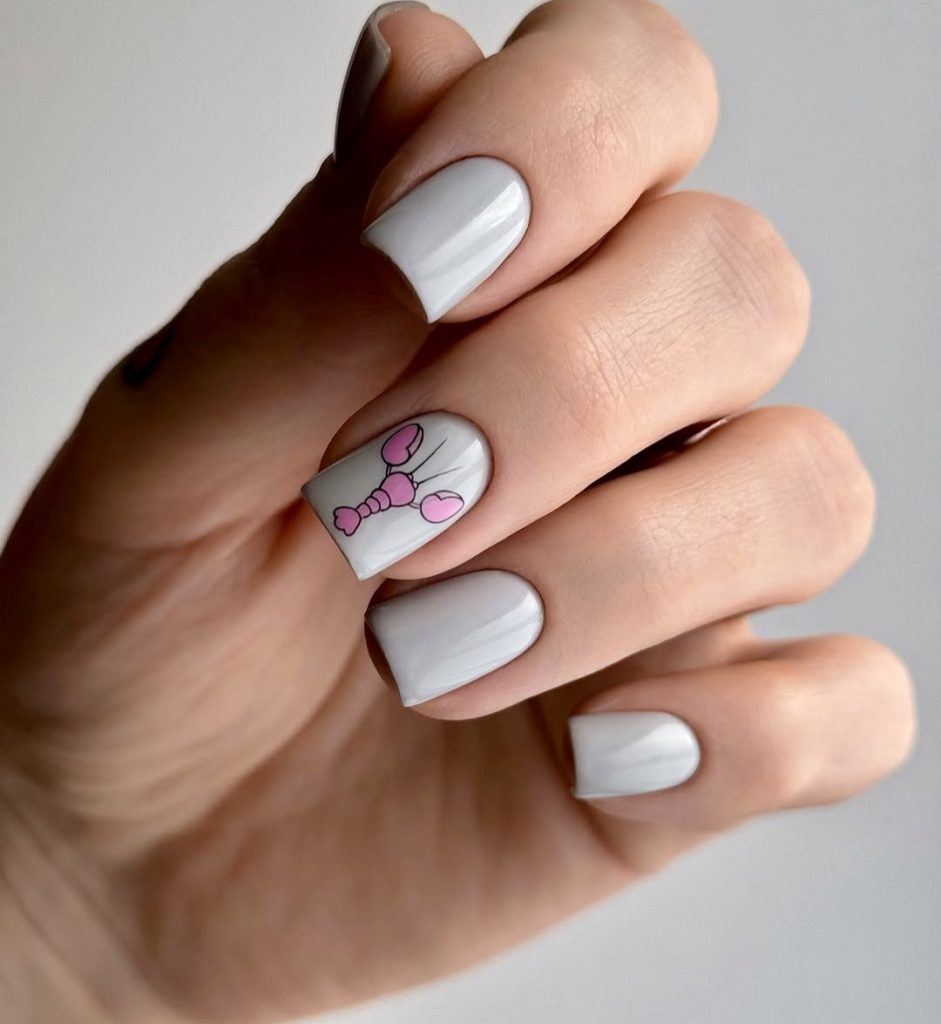 Proofing less is more, this style is beautifully done. A light gray varnish creates a backdrop that is clean and simple, whereas a funny pink lobster adds just a little bit of three-dimensional flower charm – all this with not going over the top. Perfectly suited for the women who love simple, short manicures yet do not want to miss summer fun. It is a very gently suggestion of beach days without being explicit; it can be worn on casual Fridays at work or at a seaside dinner in Spain.