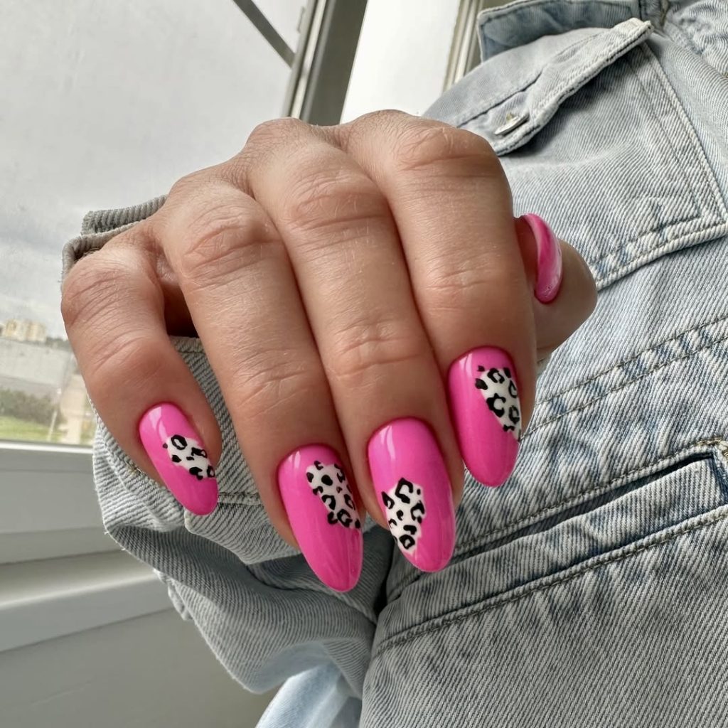 A sleek pink manicure gets an edge with leopard motifs in pristine white and bold black that add a wild touch to the glossy slickness. An oval shape gives it an elegant vibe, and the animal print adds just enough daring flair to set this nail design apart. People who admire both playful rebelliousness and pink shades must get this 2025 nail trend. The unique white and black leopard design only needs a denim jacket or a basic black dress to achieve accessorized perfection with effortless nonchalance.