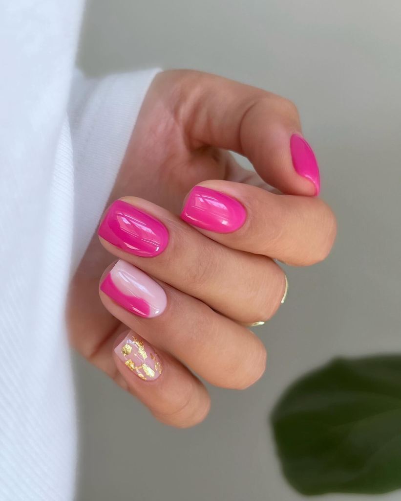 Indeed, bright pink nails are a continuous great option and these nails are no doubt the same. The bright pink color is simply ideal for introducing a lovely splash of colour to your wedding guest attire. The golden foil decoration puts in a bit of the touch of luxury and sophistication. This is the idea for this design for someone who feels both sun and water work together vibrantly and elegantly. Celebrating pink and gold together, pink and gold nails can be a fabulous place to start a wedding.