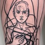 This tattoo features a charming green door that opens up to a picturesque landscape, evoking feelings of wanderlust and adventure. The blend of colors and scenic imagery creates an inviting vibe, perfect for travel enthusiasts.