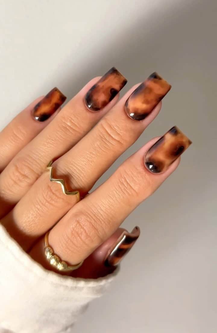 If you’re not ready to dive into the tortoise shell aesthetic just yet but do want to dip your toe in while still being extra, then these are the Goldilocks zone nails for you.