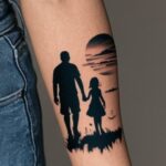 Featuring celestial motifs, dotted lines, and personalized details like a date, this design is modern and deeply symbolic.