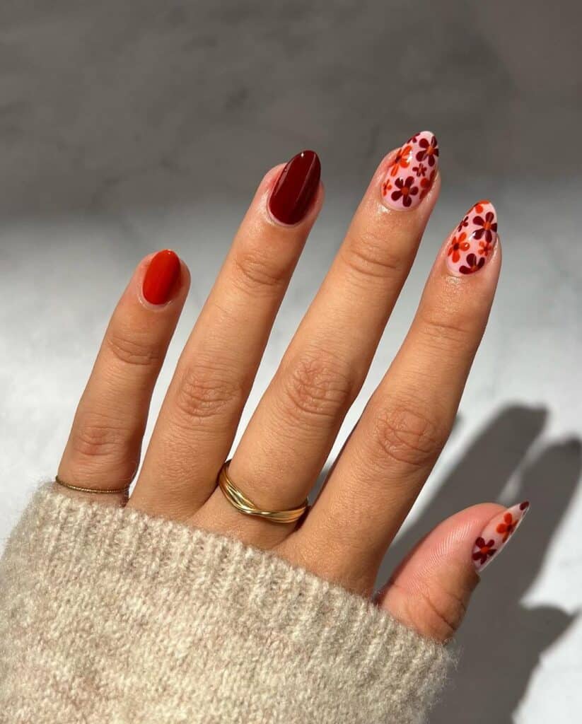 19. Cozy Autumn Floral Nails