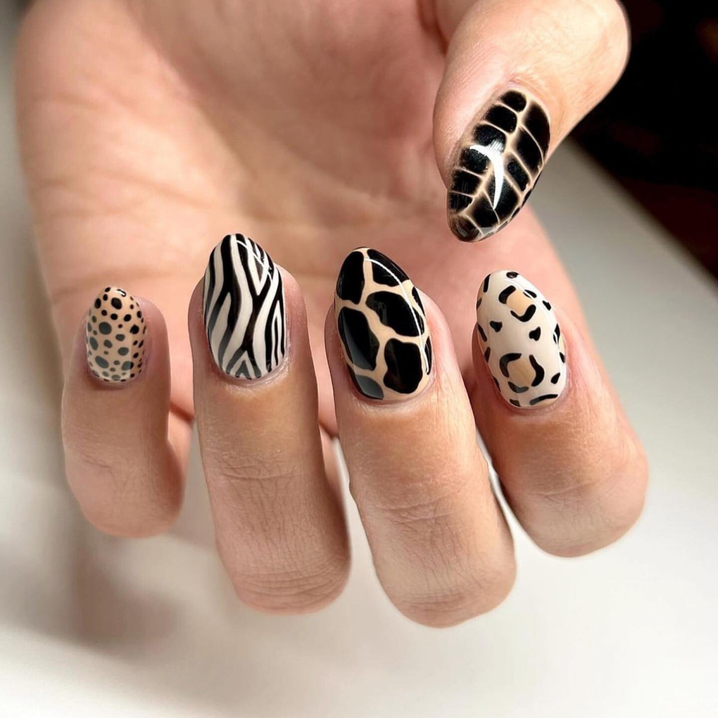 3. Mixed Animal Print Nails