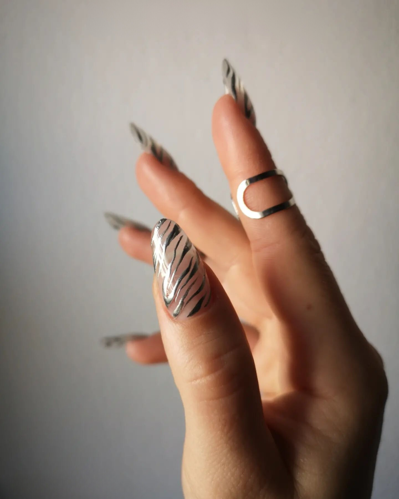 4. Elegant Silver Zebra Nails