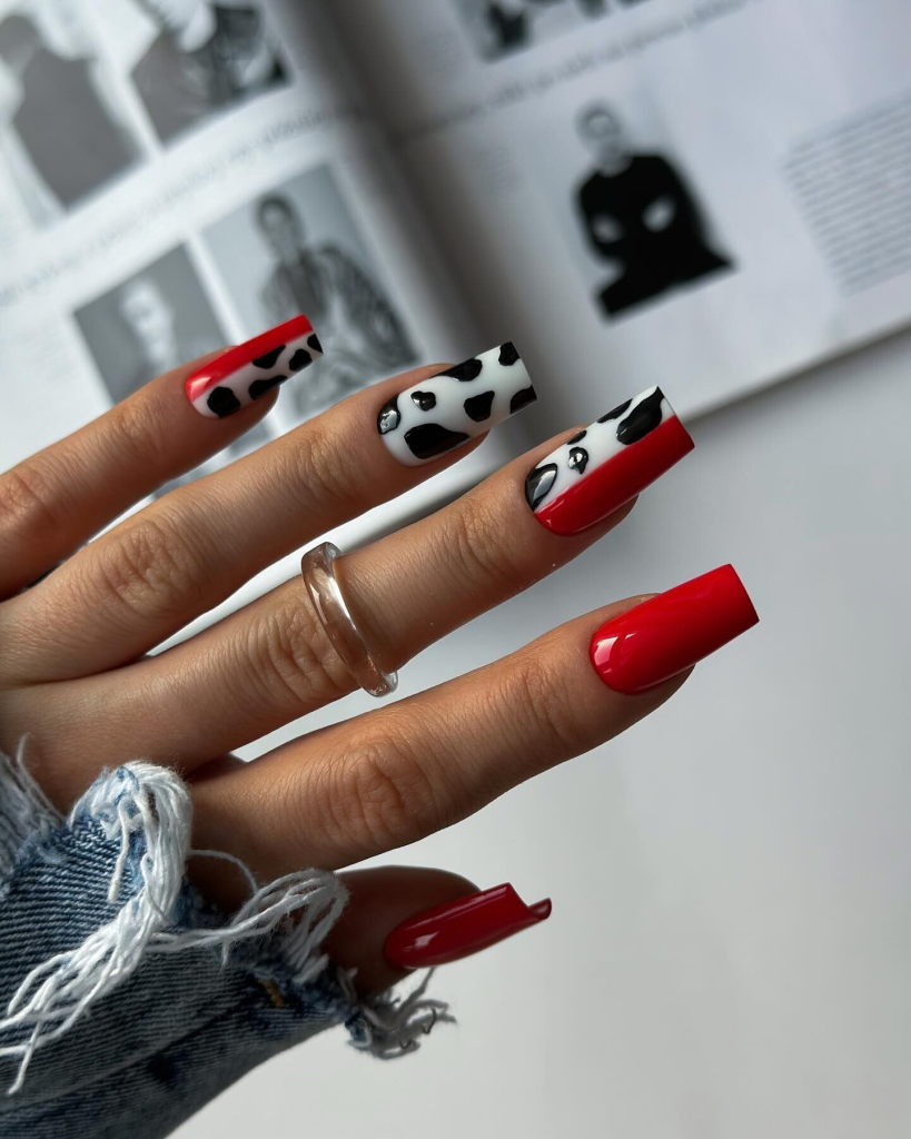 8. Monochrome Red and Black Animal Nails