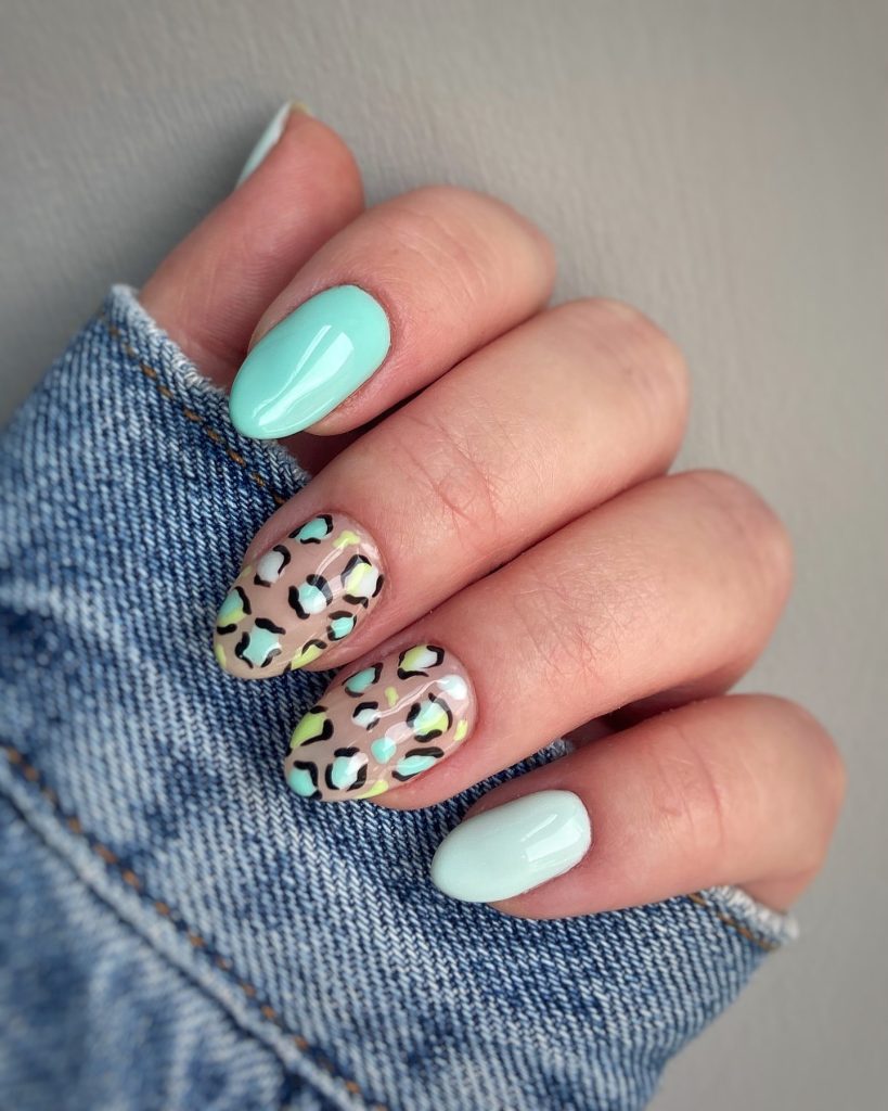 20. Pastel Mint Leopard Nails