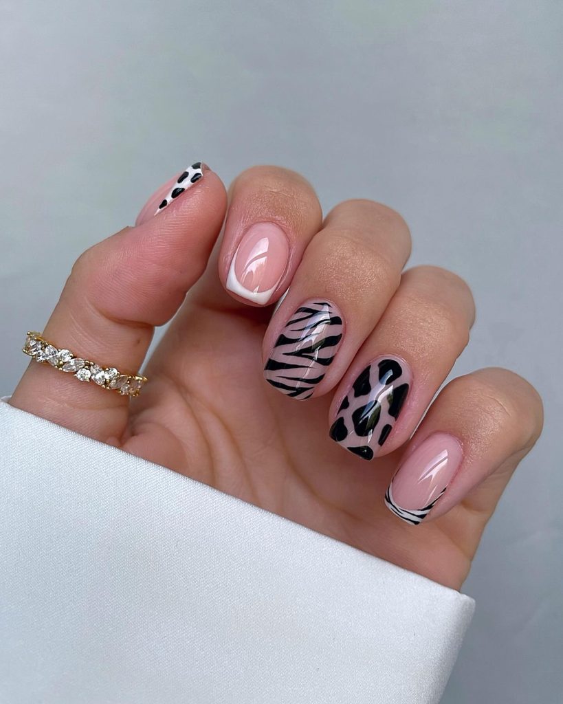 21. Minimalist Zebra and Leopard Nails