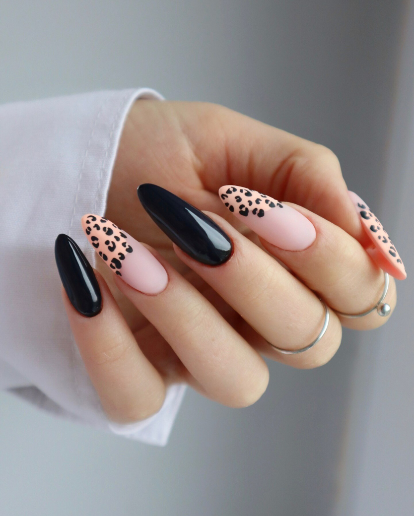 32. Bold Black and Nude Leopard Nails