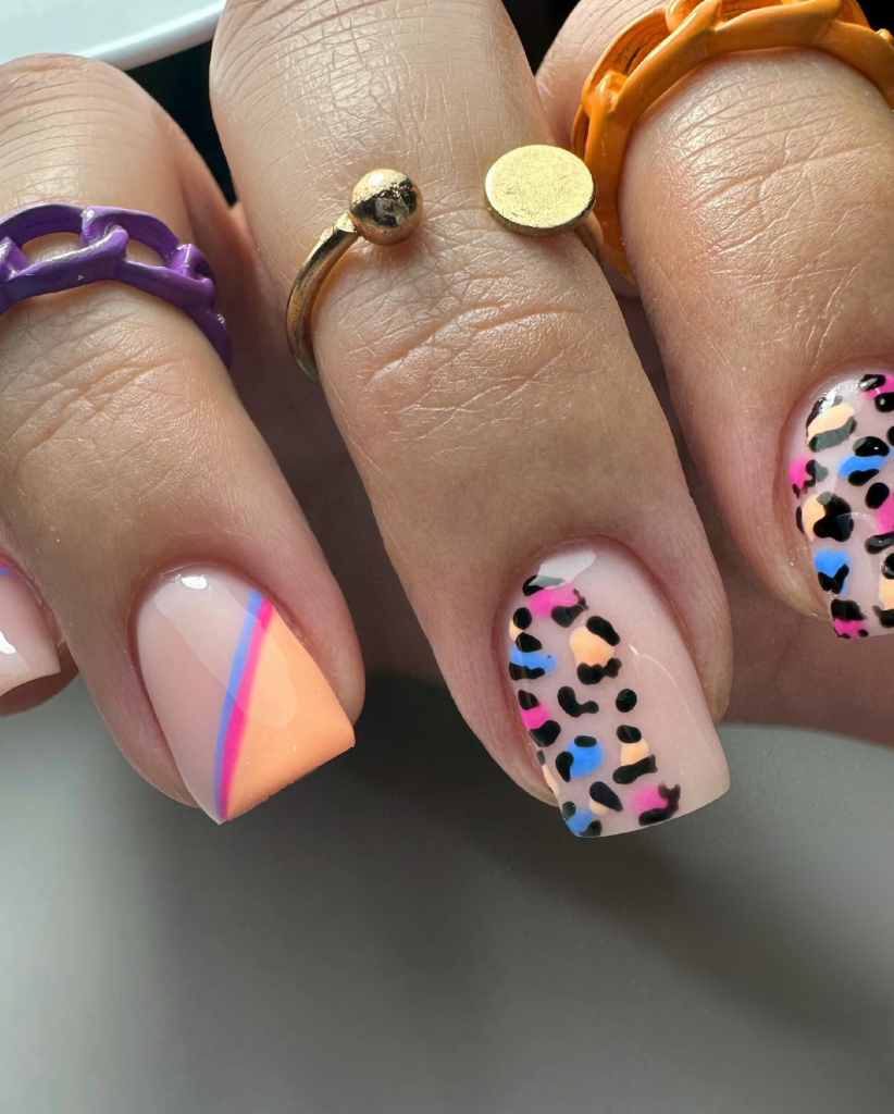 18. Colorful Leopard and Cow Print Nails