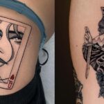 This tattoo features a beautifully detailed heart with kintsugi-inspired embellishments. The vibrant colors and artistic patterns convey a sense of resilience and beauty in imperfection. It’s a striking representation of art interwoven with symbolism, perfect for those who appreciate meaningful body art.