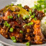 As the mixture simmers, the beef is returned to the pan to cook gently until tender. The sauce reduces and thickens slightly, coating each slice with a glossy, flavorful sheen. A final adjustment of salt and pepper ensures perfect balance. The finishing touch — topping the dish with the previously caramelized onions — completes the dish with sweetness and aroma, ready to be served hot with steamed rice.