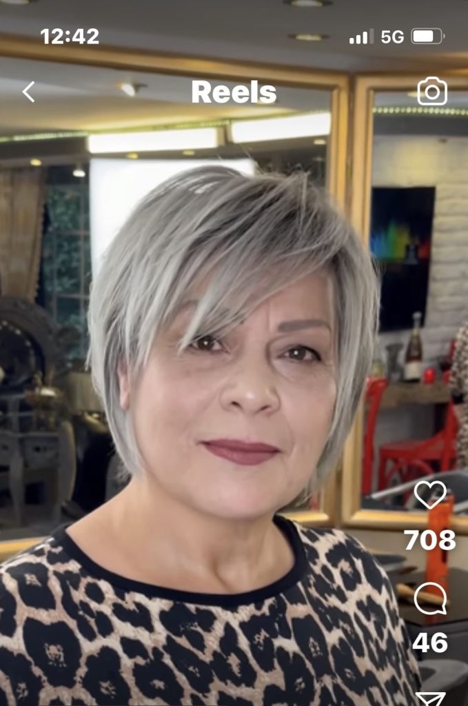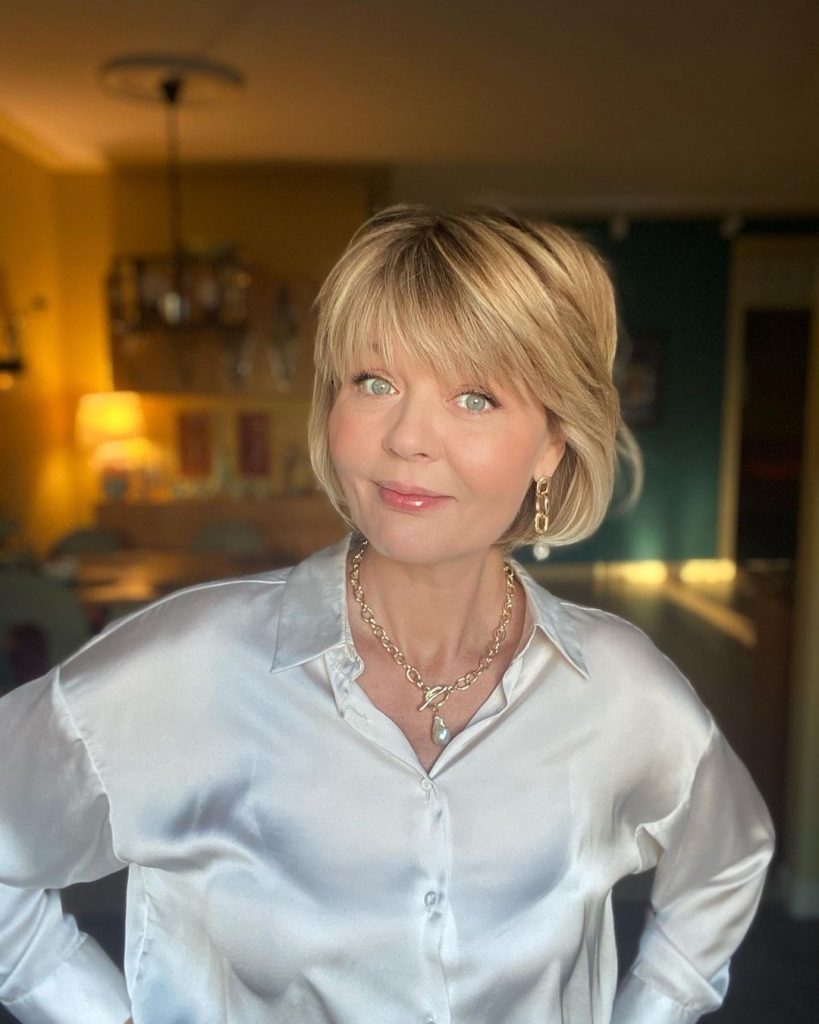 The bob’s short bob that has a modern touch is the most chic and flattering for middle-aged women who have round faces. A back short length that is short and gradually increases to the front, brings a modern line and this line is actually a line that describes the beautiful shape of the face. The deep side part is asymmetrical which levelizes the face and takes attention from the round face.Recently, I am used to with this style that works on my fine hair the most. Besides that, the smooth angles of the haircut give the hair a beautiful look. The hairstyle is finished with a straightening serum and a flat iron which are used to keep the hair smooth and shiny.