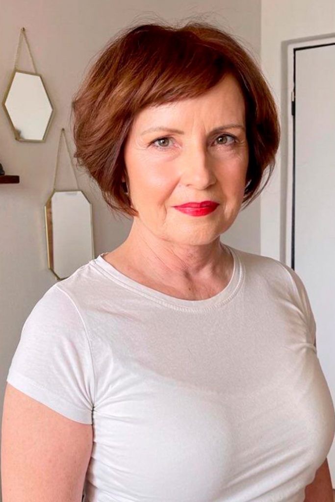 In this case, a fun, free-spirited haircut with choppy bangs is the one that highlights a fresh tempo to the look. The layers are trimmed out in a way that adds fullness, making it a great way for older women to achieve a fresher look. This type of short layered haircut is a perfect mixture of boldness and elegance, demonstrating the branching of short haircuts into the expression of individuality.