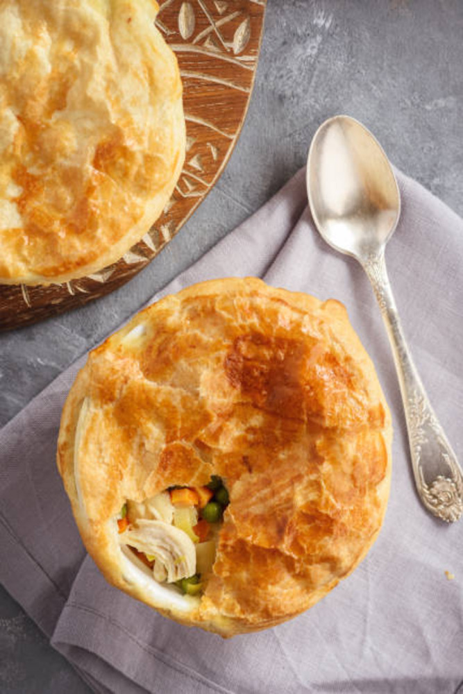 - Pie Base: To use puff pastry as a pie base, grease the pots with oil or butter. Line the pots with puff pastry, leaving some excess to drape over the edges. Bake at 180C/350F for about 10 minutes or until the base starts to puff. Push the pastry back down and repeat as needed until golden. Cool the base, fill with cooled filling, brush the pastry rim with egg, top with a puff pastry lid, and bake as directed.