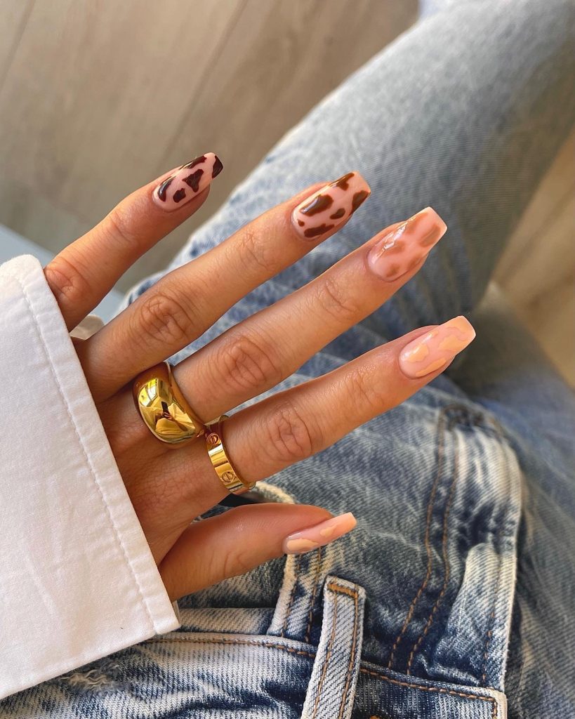 You can express the untamed spirit and be free with your nails done in leopard print that are paired with traditional neutral colors and a little bit of sass. The fast traveler in you will find these nails as the perfect accessory to any outfit by adding a bit of adventure and of course, they are so bright that people will be interested in chatting about them during the break.