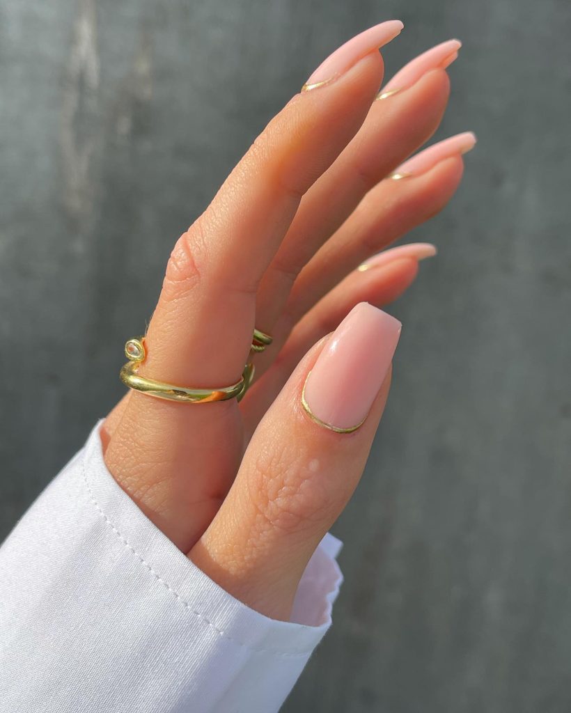 A flesh-toned nail with a touch of sheen imparts a small amount of glamor, but not excessive. These nails will be the perfect match for a beach vacation wardrobe, which, like the sun’s rays on the sea, will reflect their glow. It is simple but lavish; it looks like a laid-back family trip.