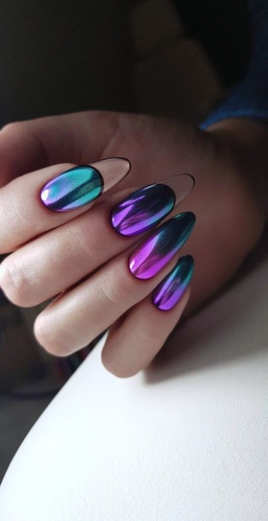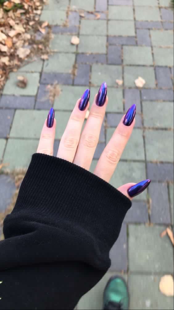 These nails are decorated with a chrome finish in deep and bright shades of purple, which makes them look very elegant . The almond shape is at the same time both timeless and trendy so the design can go from a day at the office to an evening party in a flawless way. Looking at the only color choice, you can understand that people who find beauty in simple things would wear these nails. The statement of being both powerful and understated is such a great thing.