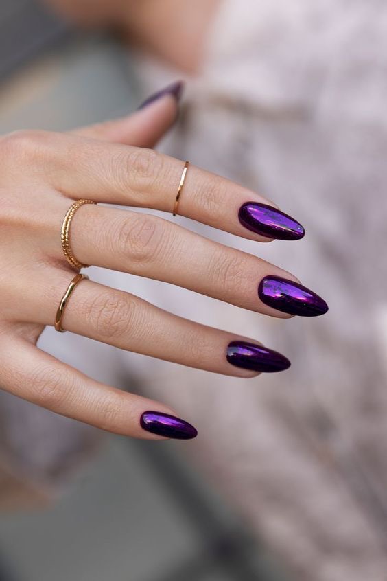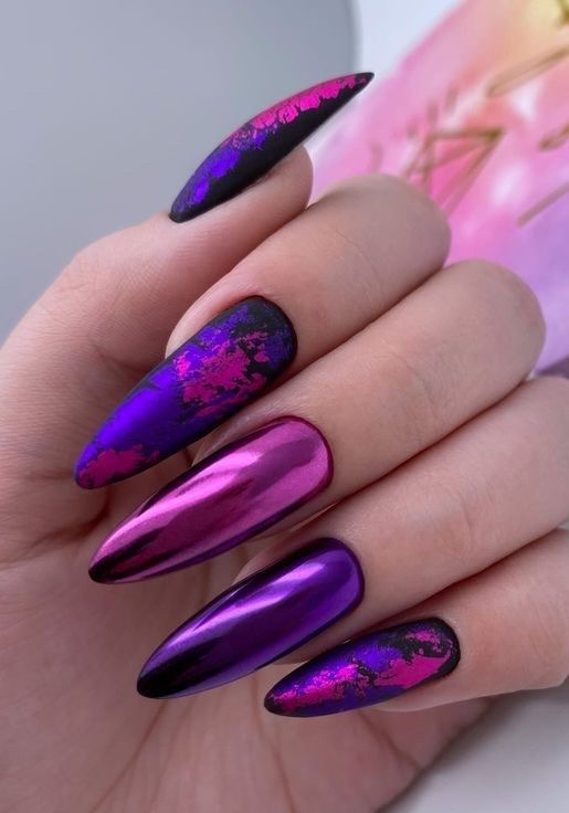 The next style is characterized by the captivating haze of purple chrome that evokes a sense of mystique, thus it can be referred to a design that is both enigmatic and attractive. The soft ombre effect that appears as it moves from dark to light purple is the best representative of a dreamlike quality, which is precisely for those bearers of a mysterious aura.