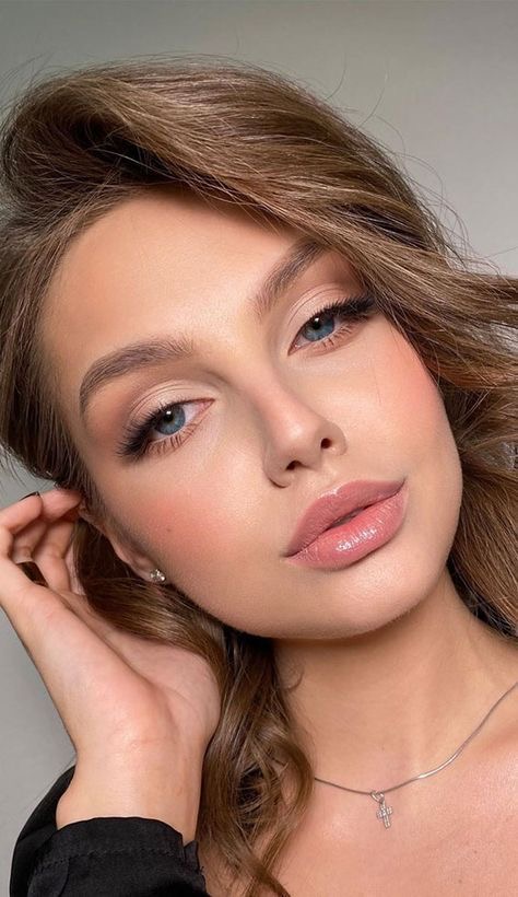 The allure of nude makeup lies in its subtlety and the illusion of ‘no makeup’ makeup. This simple, soft look is perfect for all eye colors, with gentle contouring that enhances the facial structure without looking overdone. The full, natural brows and a dab of mascara add a touch of sophistication, making it the perfect up inspo for a relaxed wedding or a minimalist school makeup routine.