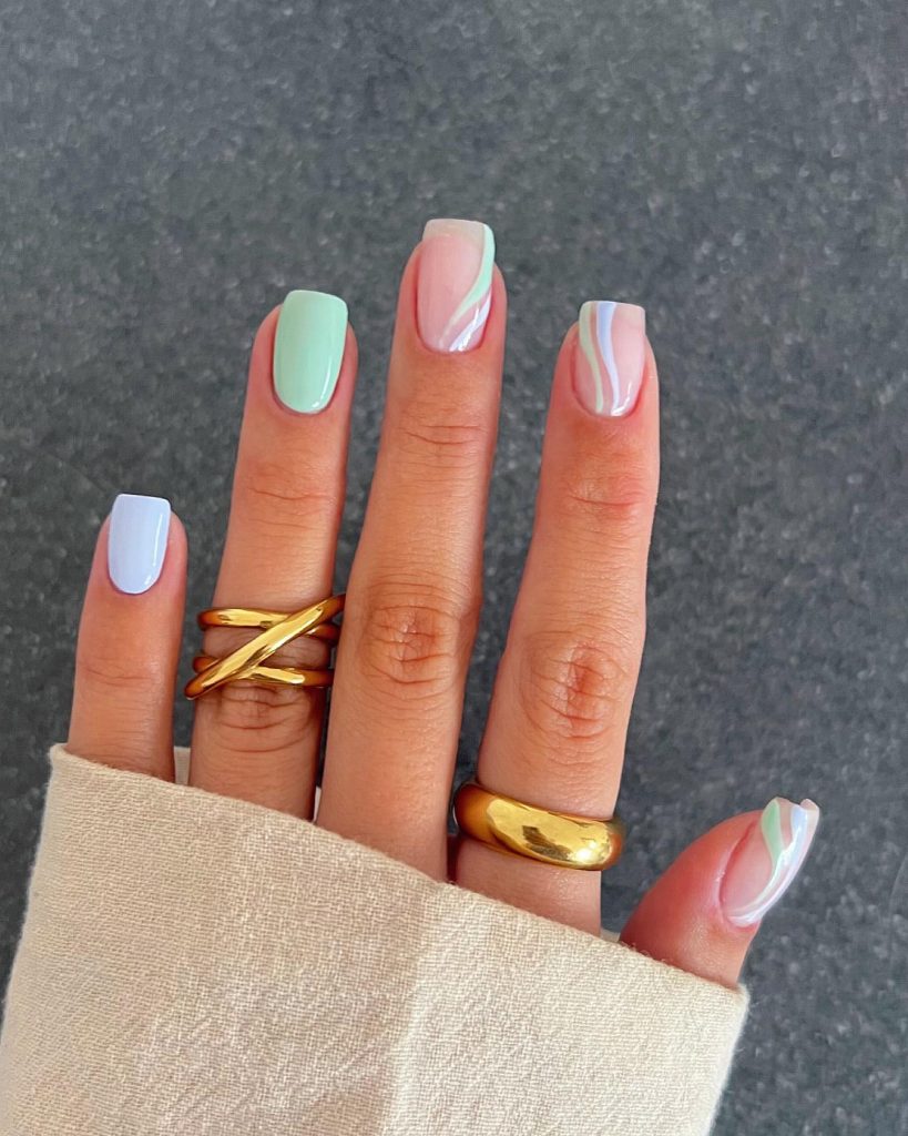 With translucent nails as the base, these are some colorful wave designs that create a sheer, light, and airy effect. It is a small but elegant way of showing the fun part of spring, for those who like to add a little bit of magic to their style.