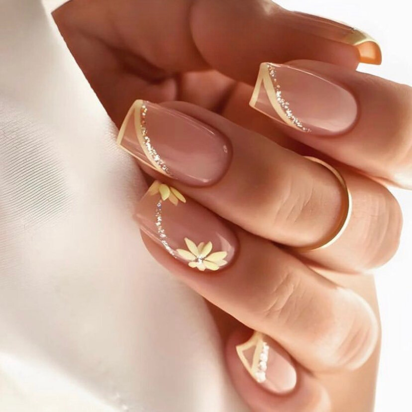 Nude nails have never been so glamorous. On this design is the golden flecks, which gives the jewelry a lovely class and it is ideal for the minimalist who wants to add a little glam to their everyday style.