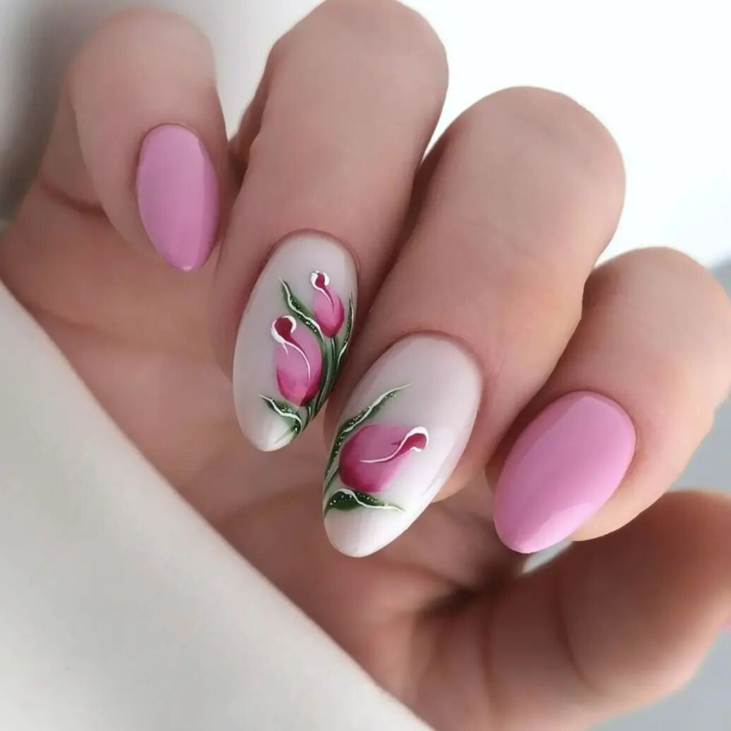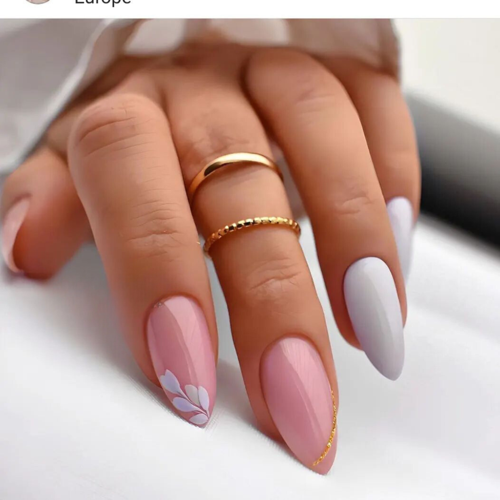 11. Floral Whisper on Almond Shaped Nails