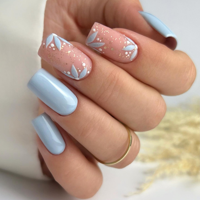 These nails have been transformed into a creative art piece by the mixture of soft pastels and bold design. The subtle pink and blue tones are taken to a higher level with the addition of complicated patterns, thus providing a modern perspective on the classical spring colors.