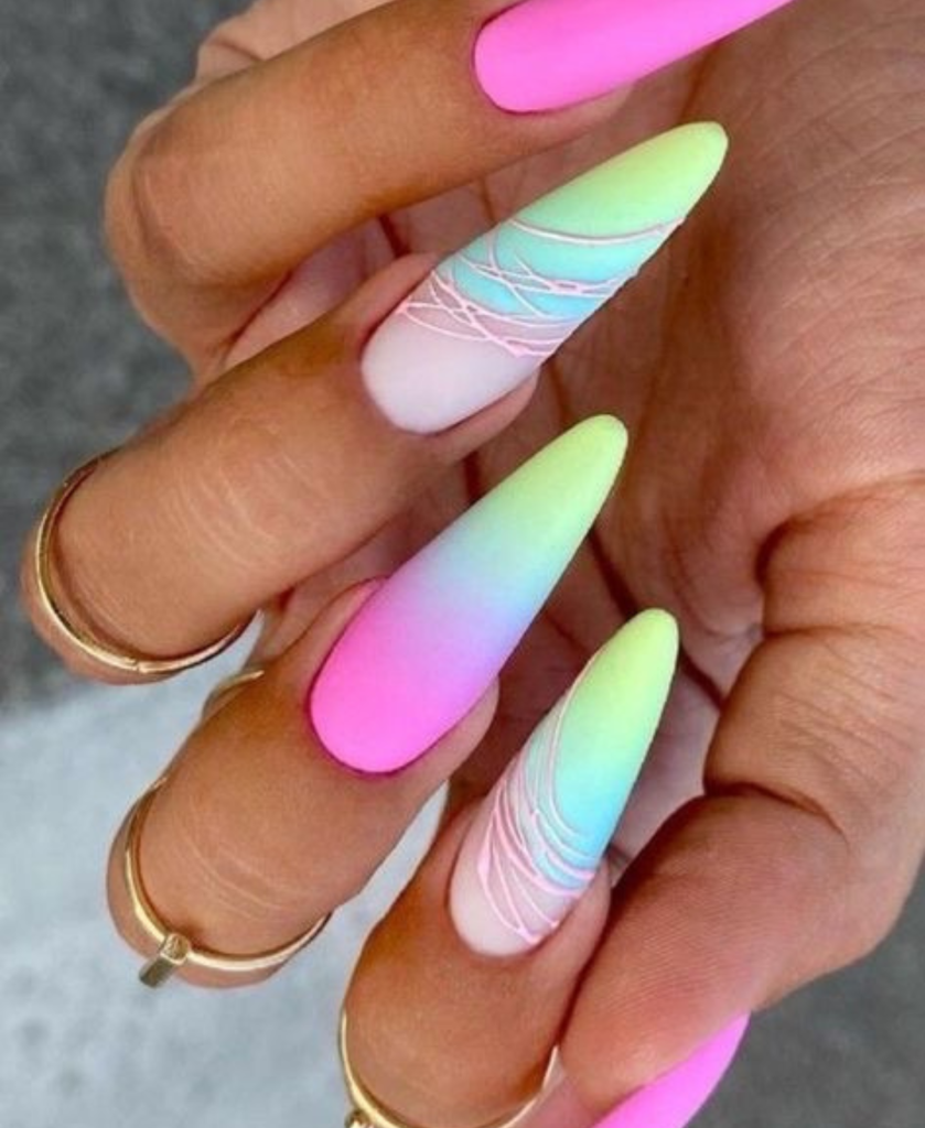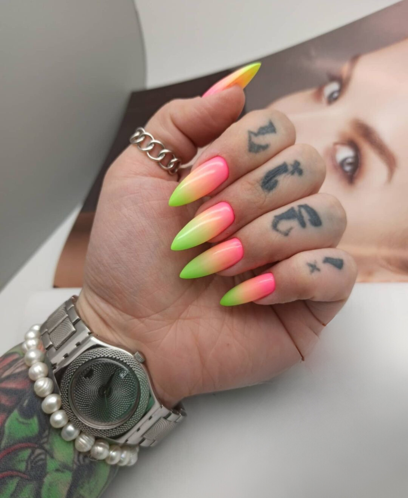 These nails are the ultimate art piece and are compared to a watercolor painting that is animated with neon colors. The careful mixing of hues brings into existence a beauty that is not only ethereal but also very radiance, and it perfectly illustrates the art of the 2024 neon trend. It’s a pattern that suits much those who prefer showing their originality and imagination with their nails.