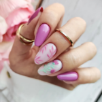 Marble is not just a kitchen countertop material; it is also a luxurious addition to your nail art catalog. The nails have a pink marble effect that reminds one of a grand palazzo’s interior. The artwork is both elegant and artistic, so it is suitable for a fine dining evening or an upscale event.