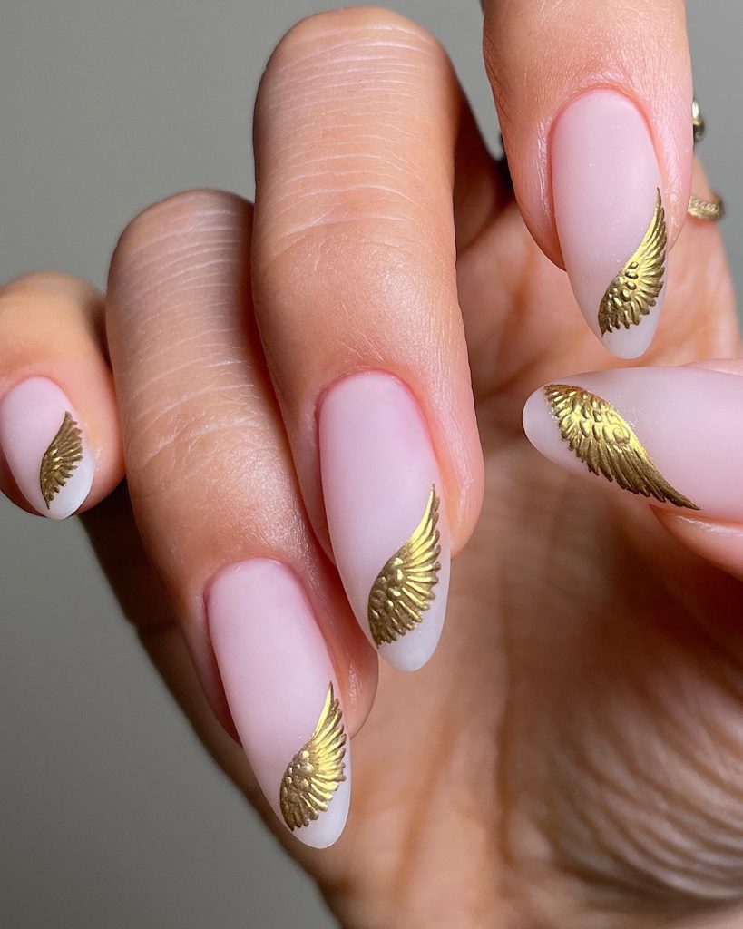 The flight of clothes’ incongruity is among the different styles of nails that have come up and one of the accents is golden feather decals that are used for the effect of transversal light. This is a style that exudes an idea of freeness and lightness, which suits very well people who feel a little bit bohemian inside them. These nails would be complemented by a dress that radiates flowiness and etherealness or a laid-back boho-chic outfit.