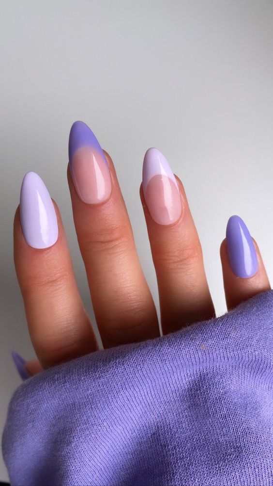French tips have always been in style, and their pastel lavender model is not an exception. This design which puts together the classic French nails with a trendy twist goes soft on the lavender and uses a nude underneath which together looks very delicate and female. The almond form enhances the elegance further so that it can be worn with everyday clothes or even on special occasions. The style with clean lines and a barely-there hue works well for those women who prefer a more sophisticated, cute, and modern look.