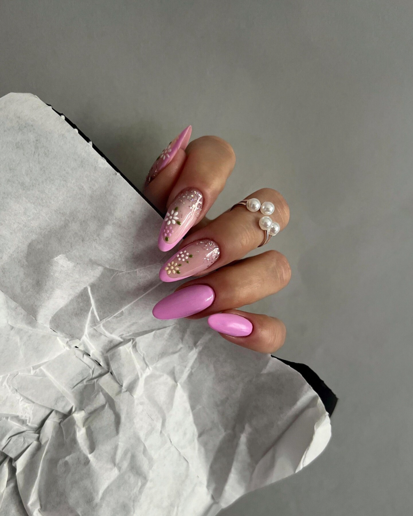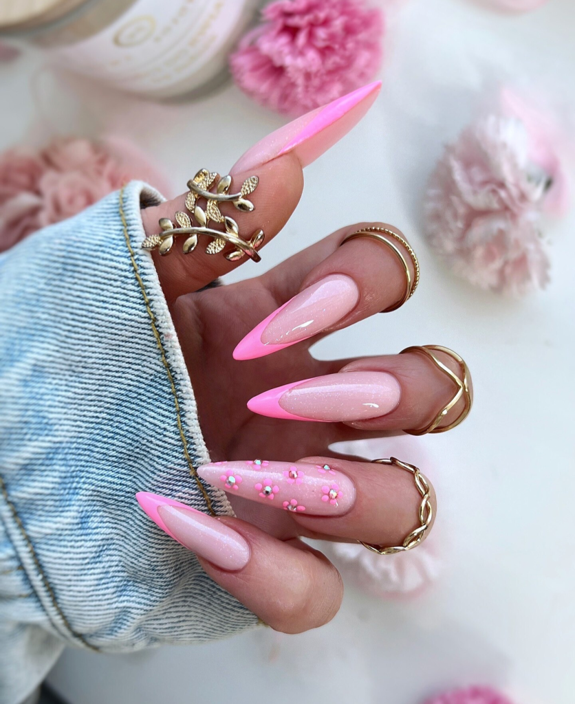 20. Romantic Pink Almond Nails with Embellishments