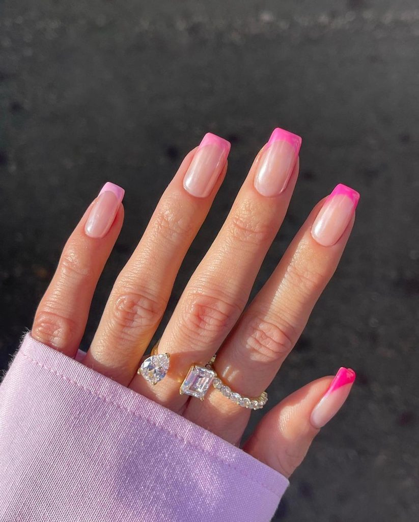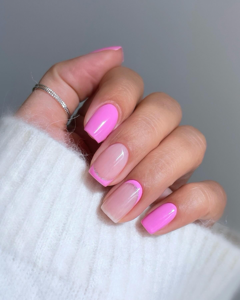 8. Bold Neon Pink with a Glittery Twist