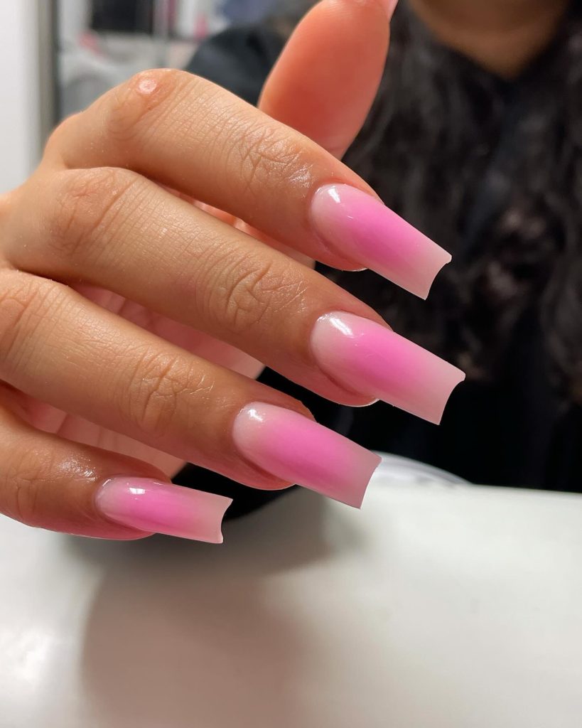 16. Dramatic Pink Ombre Long Nails