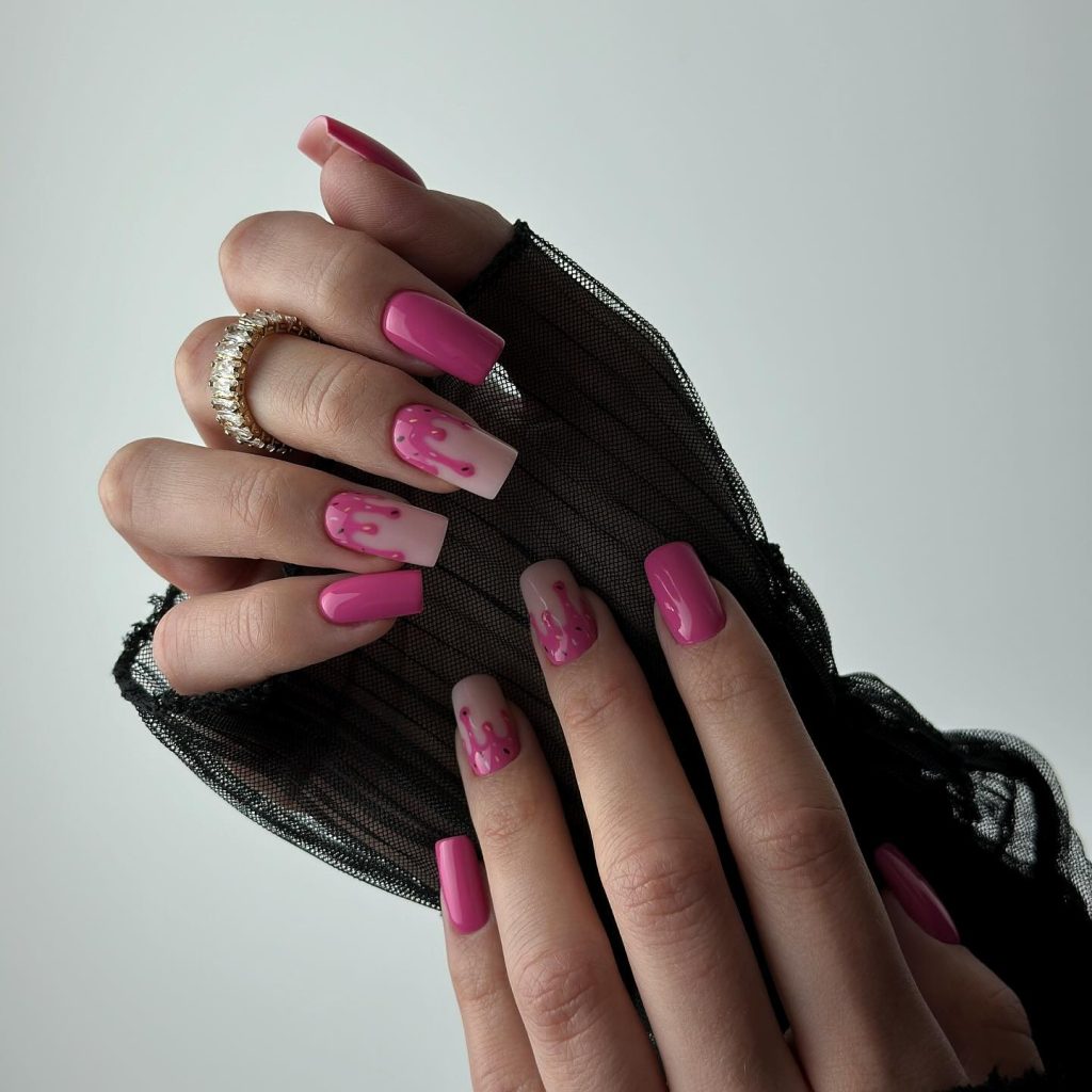 If you want to be discerning unique, this daring pink manicure is for you, which blends together the new nail art involving geometric figures and the one-color method. This design is particularly chic, thanks to its straightforward use of bold lines and the clever interplay of two pink tones, and thus it is appropriate for forward-thinking people who love an imaginative twist on it’s a classic nail style.
