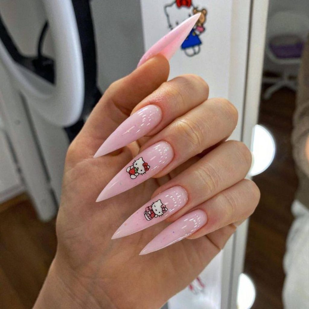 These cheerful Hello Kitty nail art designs will definitely bring out your little inner brashness. The whimsical character by adding a playful accent to the soft pink base makes these nails a good choice for Hello Kitty fans or anyone who enjoy mixing fun elements with their style. The design is a great fit since it is not only lovely but also it brings a personal touch that shows a love for pop culture and nostalgia.