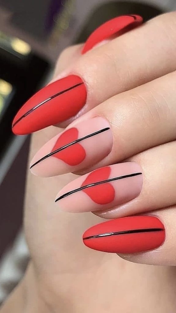 These nails are the modern and abstract equivalent of Valentine’s Day with their red squiggles and black outlines. The stickiest of such styles are the avant-garde women who are into contemporary art and see their fingernails as a continuation of their artistic tastes.