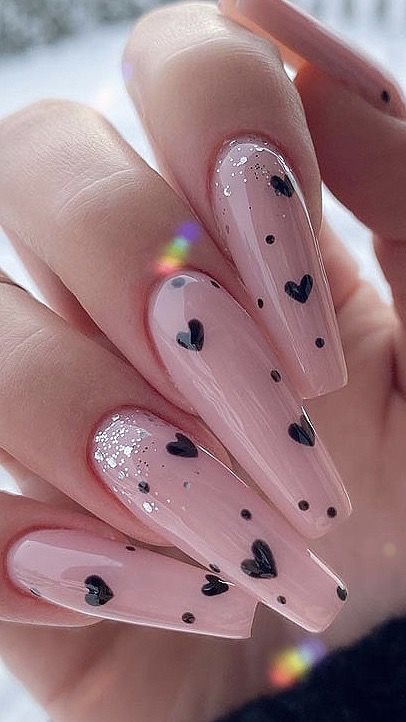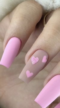 The nails have a soft pink base that encloses very light love messages and hearts, which makes them a perfect mix of romance and sophistication. The design is frail, suitable for a lady who likes a hint of story without extensive details. They would partner excellently with a pastel outfit and soft makeup.