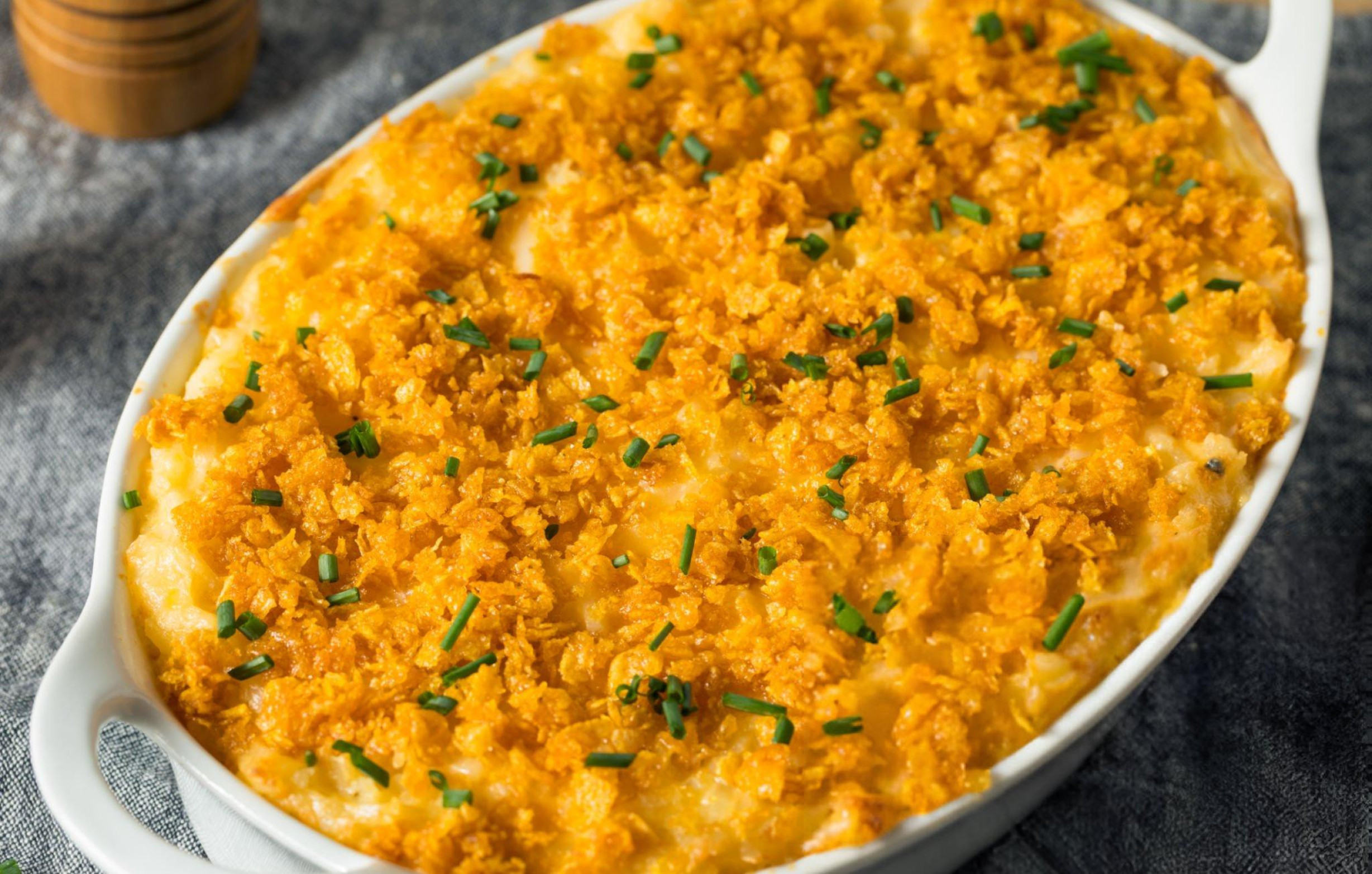 Corn flakes may seem like an unexpected topping, but when tossed in melted butter, they crisp up beautifully in the oven. This layer adds texture and contrast, turning a soft and creamy dish into something truly addictive.