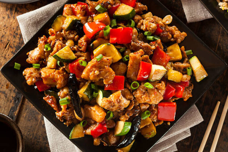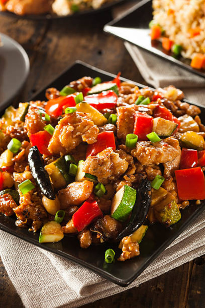 Kung Pao Chicken, a traditional Chinese stir-fry featuring chicken, peanuts, and vegetables, is simple to prepare at home.