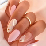 The almond-shaped nails serve as the palette for the fascinating spring time story with this design. The pale pink acts as a background for intricate floral designs that are reminiscent of the almond blossoms heralding the spring of the year.The nail art is a combination of delicateness, of the nature and of the artist, and is perfect for those who admire the beauty of the season.