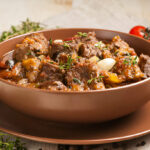 Roasted Grass Fed Beef Burgundy wraps together the rustic charm of slow cooking with the elegant depth of red wine and tender beef. Each forkful delivers melt-in-your-mouth stew cubes bathed in a velvety, aromatic sauce layered with rich flavors.